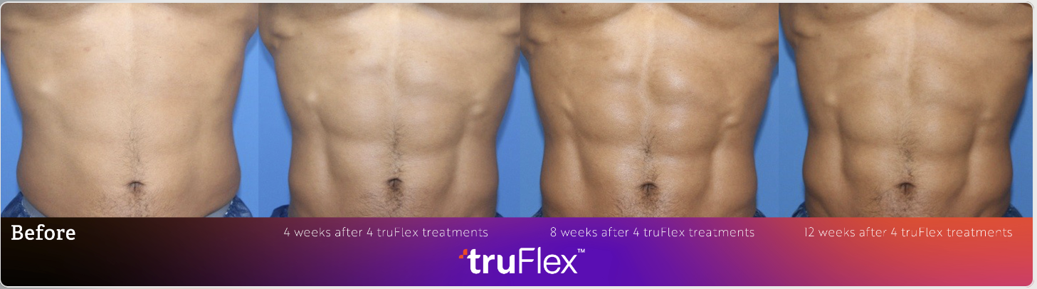 Depending on fitness level, truSculpt flex generally produces results in as few as 3 treatments spaced out over 2-3 weeks. Some people may wish to have additional treatments to achieve their individual goals and help maintain/improve upon their results. For optimal results 3 sessions are needed for fit people and 6 for non-active people. Get the package and start shedding those resistant pounds today. Maximum results are generally visible 10 weeks after the last treatment.